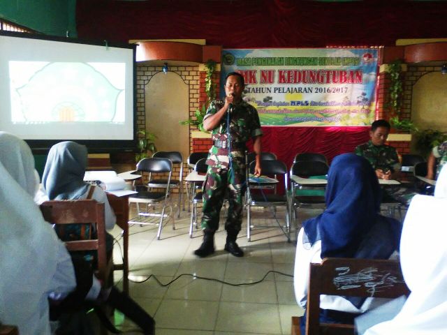 beserta 2 orang Babinsa lainnya memberikan pembekalan kepada Siswa Siswi SMK NU