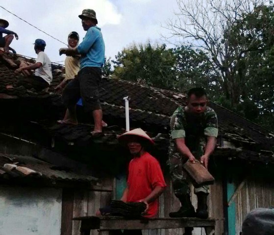 Babinsa Serka Heppy bersama sekitar 12 orang warga, mereka membantu memperbaiki