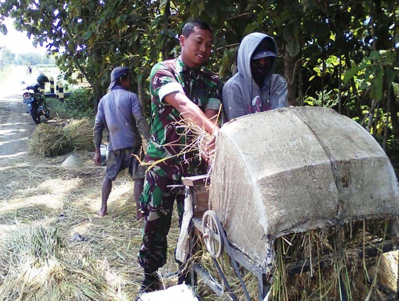 Babinsa yang terjun langsung membantu para petani serta memberikan penyuluhan