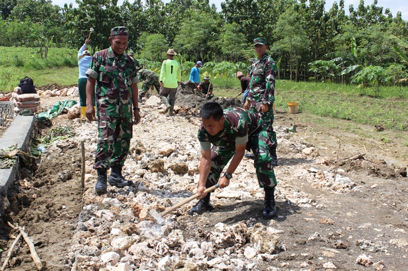 Pasiter, Danramil Jepon, Kades serta anggota dan masyarakat. “ Mecah batu sama