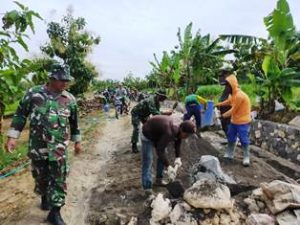 Dia melanjutkan, “Pembuatan talud yang sedang kami kerjakan ini bertujuan untuk melindungi atau menahan pinggiran sepanjang jalan persawahan Desa Sendangagung agar tidak mudah terkikis oleh air maupun ambrol akibat benda berat seperti kendaraan lewat misalnya, ” jelas Pelda Mukhtasor.