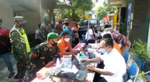 BLORA – Babinsa anggota Koramil 01/Blora Sertu H. Sutrisno bersama anggota Yonif 410/ALG melakukan pendampingan kegiatan vaksinasi (SINOVAC) Covid-19 terhadap karyawan Mayora. Jum’at (02/07/2021)