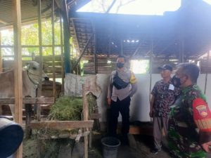 BLORA – Babinsa Koramil 09/Randublatung Sertu Suparyadi dan Bhabinkamtibmas sambangi hewan ternak warga wilayah binaan di desa Bodeh, Kecamatan Randublatung, Blora, Minggu (14/8/2022).