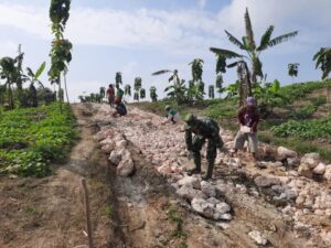 BLORA – Semangat para anggota TNI di lokasi Karya Bakti Mandiri (KBM) Kodim 0721/Blora dan warga Desa Kepoh Kecamatan Jati Kabupaten Blora, terus “membara” untuk terus meratakan batu di pembangunan jalan Makadam. Jalan tersebut merupakan sasaran fisik utama.