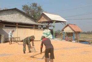 Dalam menyikapi hal itu, Koptu Sumarno anggota Koramil 09/Randublatung Kodim 0721/Blora selalu berkomitmen untuk meningkatkan ekonomi kehidupan masyarakat di desa binaannya sehingga disela sela kesibukannya dalam membina ruang pertahanan yang tangguh dia menyempatkan diri membantu Bapak Suhardi warga dukuh Pulo RT 02 RW 05 Desa Pilang Kecamatan Randublatung menjemur jagung pasca panen, Jumat (16/06/2023).