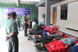 Aksi donor darah kali ini diikuti puluhan personel Kodim dan juga melibatkan anggota Persit KCK Cabang XLII Dim 0721 Bla.
