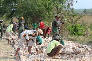 BLORA – Pembuatan jalan makadam yang menghubungkan dua desa antara Jatiroyom dengan Parunggalih sepanjang 1.700 meter dengan lebar 3 meter ini terus dikebut oleh Satgas TMMD reguler 122 Kodim 0721/Blora.