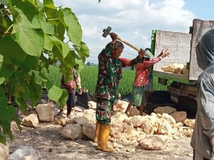 “Soal membelah batu, kami para anggota Satgas TMMD tidak mau kalah dari warga setempat. Setidaknya, kemampuan kami dalam hal ini harus setara,” ujar Kopka Suliyanto, anggota Satgas TMMD yang setiap hari turun langsung dan berbaur dengan masyarakat di lokasi. Rabu (21/5/2025)