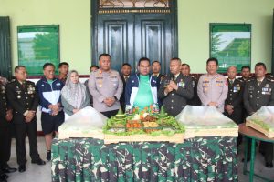 Rombongan Forkopimda yang dipimpin oleh Bupati Blora, Dr. H. Arief Rohman, S.IP., M.Si., datang membawa tumpeng bertuliskan “HUT TNI ke-80” sebagai simbol ucapan selamat dan wujud kebersamaan.