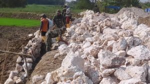 Terlihat para personel TNI Kodim 0721/Blora bersama warga bahu-membahu mengerjakan sasaran fisik. Keringat yang bercucuran tak mengurangi semangat mereka untuk menuntaskan target pekerjaan sesuai rencana.