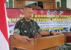 BLORA – Kodim 0721/Blora menggelar Rapat Koordinasi Teknis (Rakornis) terkait pelaksanaan TNI Manunggal Membangun Desa (TMMD) Sengkuyung Tahap IV Tahun Anggaran 2025 mengusung tema “Dengan Semangat TMMD Mewujudkan Pemerataan Pembangunan dan Ketahanan Nasional di Wilayah”. Rakornis berlangsung di Aula Makodim 0721/Blora, Jalan Pemuda No. 44 Blora, pada Kamis (2/10/2025).