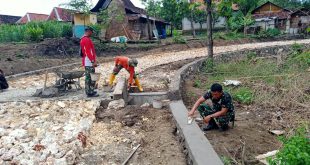 BLORA – Pembangunan talud dalam program TMMD Sengkuyung Tahap IV Kodim 0721/Blora di Desa Muraharjo, Kecamatan Kunduran, Kabupaten Blora, Jawa Tengah, kini mulai memasuki tahap finishing atau pengacian dinding.