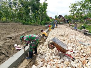 Memasuki hari ke-17 pelaksanaan TMMD, sinergi antara anggota Satgas TMMD dan masyarakat setempat terus terjaga dengan semangat tinggi untuk menuntaskan pembangunan jalan makadam sepanjang 450 meter dengan lebar 4 meter, Jumat (24/10/2025).