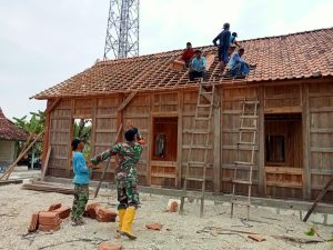 Blora – Babinsa Kelurahan Randublatung, Koramil 09/Randublatung Kodim 0721/Blora, Sertu Bunowo, ikut bergotong royong membantu pembangunan rumah milik Suwarno, warga Dukuh Pojok RT 06 RW 02, Kelurahan Randublatung, Kecamatan Randublatung, Blora, Senin (17/11/2025).