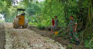 BLORA – Pembangunan akses jalan makadam di Desa Nglandeyan Kecamatan Kedungtuban sepanjang 750 meter kini tinggal tahap pemadatan badan jalan. Akses jalan tersebut merupakan salah satu program sasaran fisik Karya Bakti Mandiri (KBM) Kodim 0721/Blora. Bahan material batu sudah diratakan oleh anggota Koramil 08/Kedungtuban bersama masyarakat dengan menggunakan alat manual. …