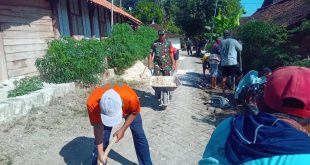 BLORA – Wujudkan kemanunggalan TNI dengan rakyat, Koptu Pujiono, Babinsa Koramil 11/Jati, melaksanakan pemantauan wilayah sekaligus bergotong royong bersama warga dalam perbaikan jalan dengan pemasangan paving block di RT 01 RW 02, Desa Jati, Kecamatan Jati, Kabupaten Blora, Jumat (2/5/2025). Akses jalan yang layak menjadi kebutuhan utama masyarakat dalam mendukung …